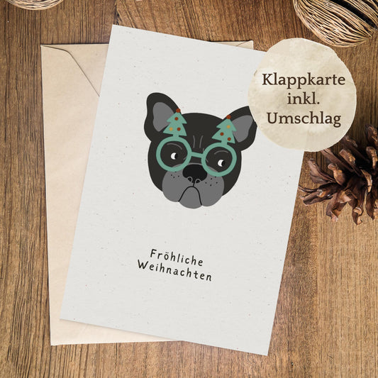 Klappkarte Weihnachten | Fröhliche Weihnachten mit Bulldogge